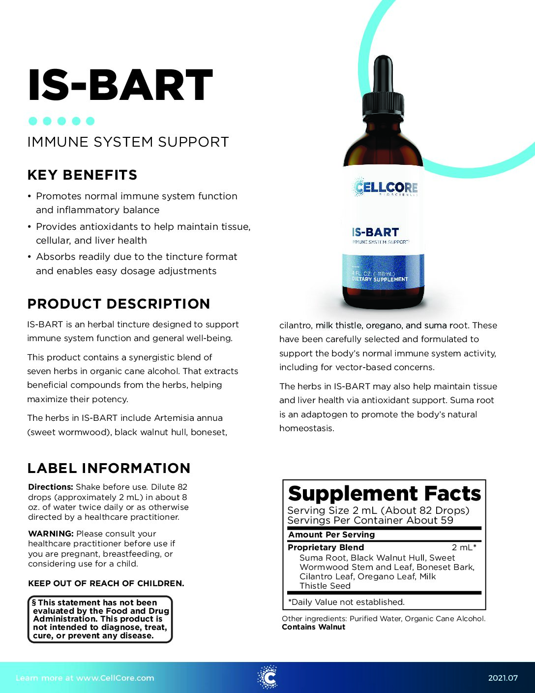 CellCore IS-Bart may be used in conjunction with CellCore IS-Borr and IS-BAB for immune system support. Please consult with your licensed health practitioner or doctor.