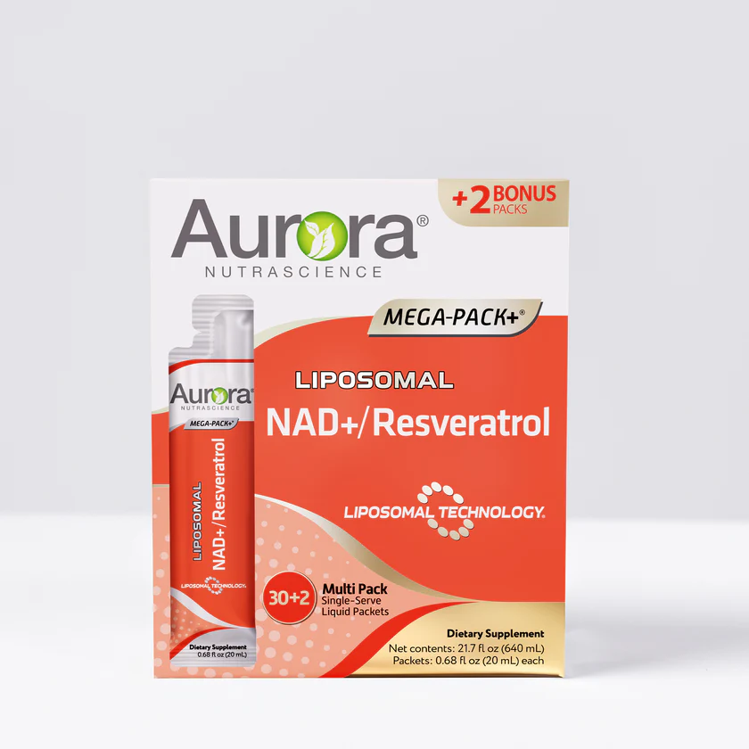Our Liposomal NAD/Resveratrol from Aurora NutraSciences is created from all natural phosphatidylcholine nutrient-filled liposome nanospheres delivery system made from NON-GMO Soy Lecithin. These liposomes encapsulate and protect the NAD/Resveratrol+ molecules that help facilitate a more efficient transition through the digestive system and are absorbed more readily into the bloodstream.